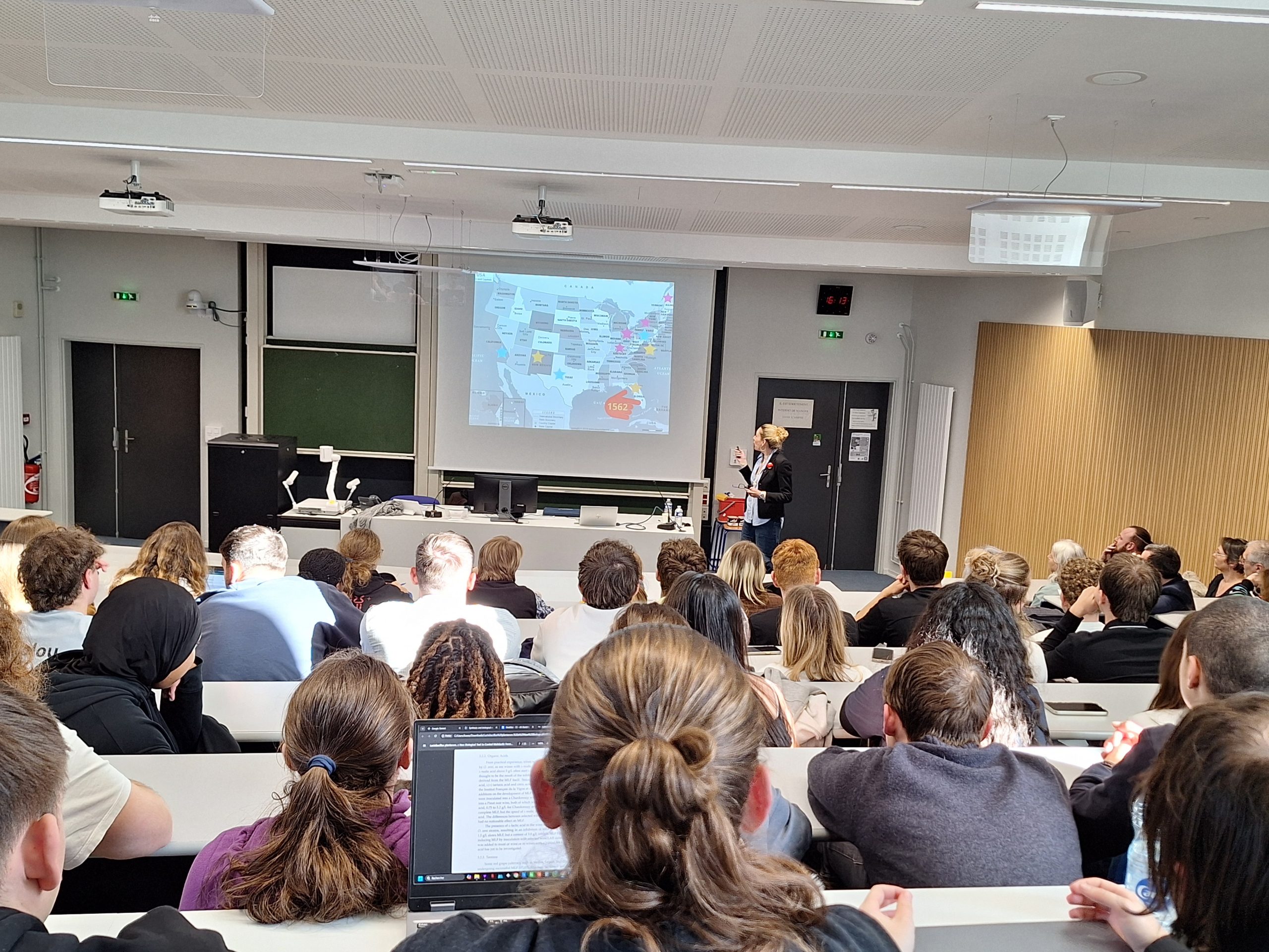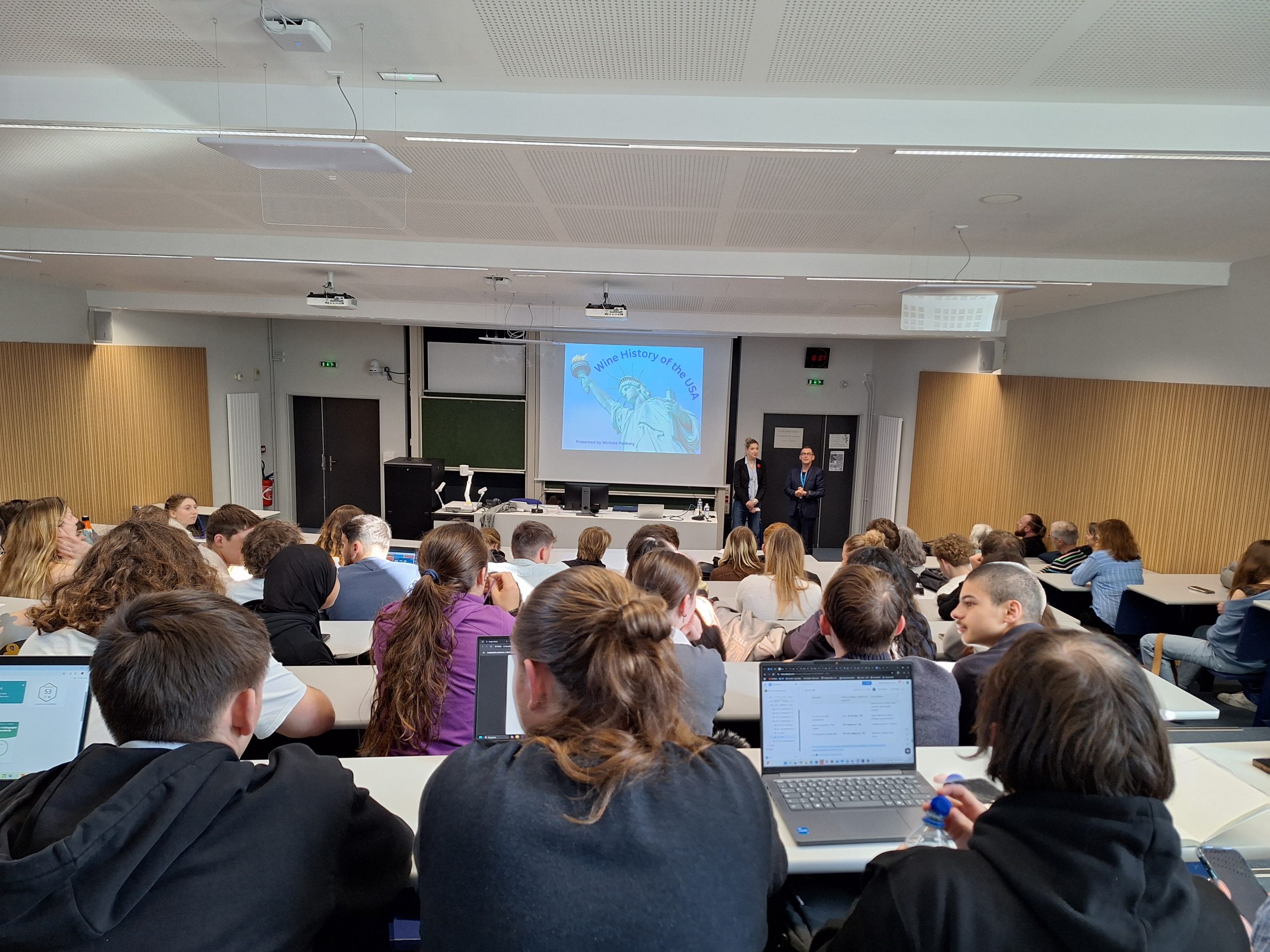 Les conférences ont suscité de nombreuses réactions chez nos étudiants qui ont pu librement échanger avec Michele Padberg : sur les tendances de consommation chez les jeunes Américains, sur les enjeux climatiques pour les vignobles du Nouveau-Mexique, ou encore sur les différences culturelles de perception du vin entre l’Europe et les États-Unis.